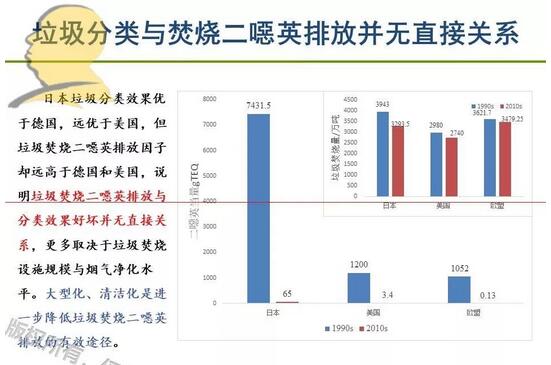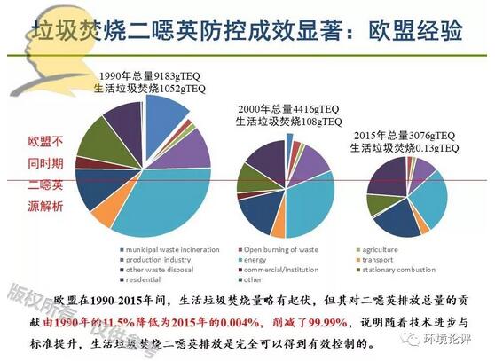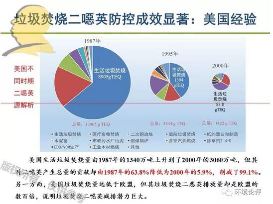 我國現(xiàn)代化垃圾焚燒起步較晚,主要通過引起消化再創(chuàng)新的方式,較好地實現(xiàn)了與發(fā)達國家同期先進技術(shù)的接軌,在我國二噁英排放清單中過去不曾是、現(xiàn)在算不上、將來也不可能成為“帶頭大哥”。事實上,由于垃圾本身均含有一定量的二噁英,現(xiàn)代化大型垃圾焚燒設(shè)施更多地是二噁英的消減器,而不是發(fā)生器。從歐盟、美國、日本的經(jīng)驗來看,通過技術(shù)進步和標準提升,垃圾焚燒二噁英排放削減率可超過99%,甚至達到99.99%。