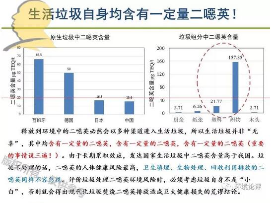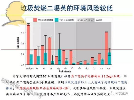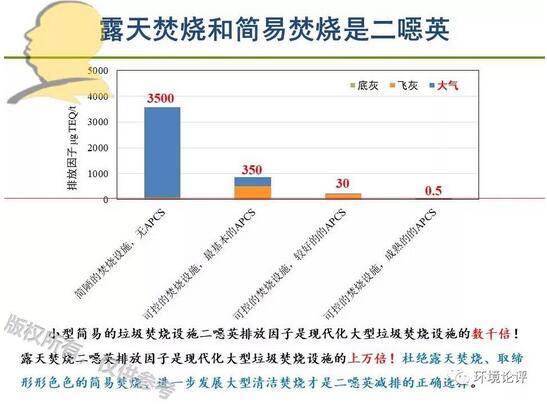 日本、英國的研究表明,膳食攝入是人體二噁英暴露的主要途徑,占總攝入量的98%以上,呼吸攝入不足1%,因此從二惡英風險控制角度出發(fā),垃圾焚燒廠可建在城市區(qū)域,應(yīng)盡可能遠離農(nóng)牧水產(chǎn)區(qū)。近期南京大學的研究表明,垃圾焚燒二噁英致癌風險較可接受水平低1個數(shù)量級。由于簡易焚燒、露天焚燒的二噁英排放因子是現(xiàn)代化垃圾焚燒的數(shù)千倍至上萬倍,我國在普遍推行垃圾分類制度、完善垃圾分類處理系統(tǒng)過程中,應(yīng)堅決杜絕露天焚燒、取締簡易焚燒,堅定不移地發(fā)展現(xiàn)代化大型清潔垃圾焚燒。