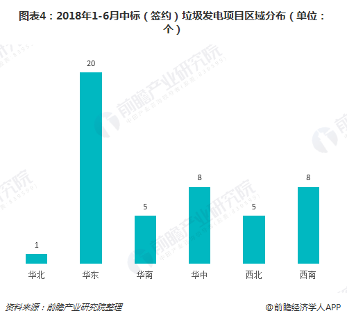 分區(qū)域來看,今年上半年新簽項(xiàng)目主要落在山東、浙江為代表的華東區(qū)域,生活垃圾焚燒發(fā)電項(xiàng)目約有20個;其次是以河南、湖北為代表的華中區(qū)域,以貴州為代表的西南區(qū)域,各有8個項(xiàng)目。