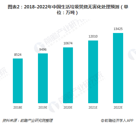 垃圾處理是現(xiàn)代社會人類生活的剛性需求,垃圾是否得到清潔化處理,是現(xiàn)代文明的重要標(biāo)志。雖然生活垃圾產(chǎn)生量逐年增加,但隨著垃圾焚燒技術(shù)的不斷提升,生活垃圾的無害化處理率也在逐年提高。2018年,城市生活垃圾焚燒無害化處理量預(yù)計(jì)達(dá)8524萬噸,到2022年將超過13000萬噸。
