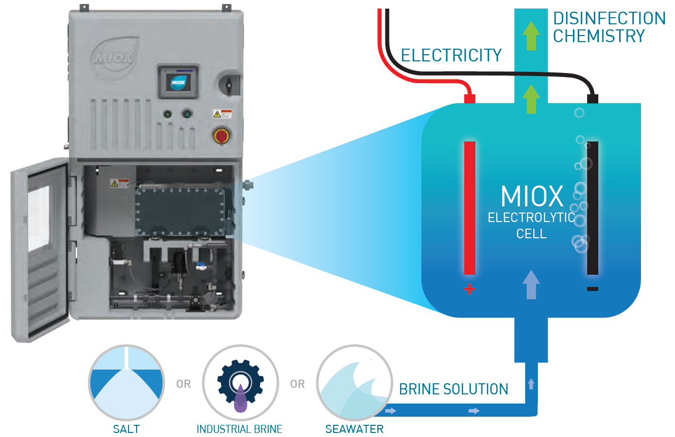 迪諾拉MIOX技術(shù)能現(xiàn)場制備混合氧化物溶液,并針對更具有挑戰(zhàn)性的應(yīng)用進(jìn)行了優(yōu)化。這種混合氧化物溶液具有次氯酸鈉的所有氧化能力,同時具有過氧化氫的額外處理優(yōu)勢,包括穿透去除生物膜、有害消毒副產(chǎn)品的減少,改善氣味以及水的澄清度。此外,MIOX所具備的自清洗等獨特功能,能幫助客戶通過更低的加藥量保持更穩(wěn)定的控制和余氯濃度。