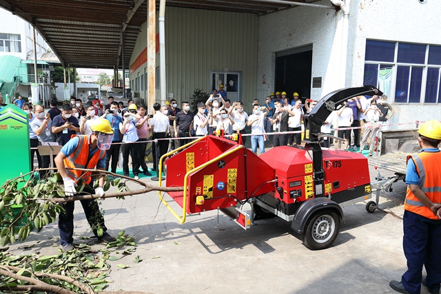交流會(huì)后,參會(huì)代表一同前往斯瑞德公司,觀看斯瑞德大件垃圾處理系統(tǒng)、丹麥 TP 樹(shù)枝削片機(jī)、奧地利 Komptech 履帶式移動(dòng)破碎機(jī)、斯瑞德自主研發(fā)的移動(dòng)式破碎機(jī)等環(huán)保固廢破碎設(shè)備的實(shí)物現(xiàn)場(chǎng)演示。