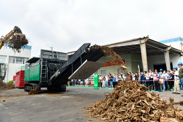 其中,令人矚目的是從奧地利原裝進(jìn)口的奧地利Komptech移動(dòng)式破碎機(jī)和斯瑞德自主研發(fā)的移動(dòng)式破碎機(jī),只見(jiàn)機(jī)器輕松吞下一人懷抱的大樹(shù),出來(lái)的200mm~300mm的木塊。