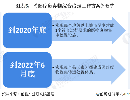 2020年2月24日,國(guó)家衛(wèi)健委、生態(tài)環(huán)境部等十部委聯(lián)合印發(fā)《醫(yī)療廢棄物綜合治理工作方案》,《方案》要求,要在2020年年底前實(shí)現(xiàn)每個(gè)地級(jí)以上城市至少建成1個(gè)符合運(yùn)行要求的醫(yī)療廢物集中處置設(shè)施;到2022年6月底前,實(shí)現(xiàn)每個(gè)縣(市)都建成醫(yī)療廢物收集轉(zhuǎn)運(yùn)處置體系。