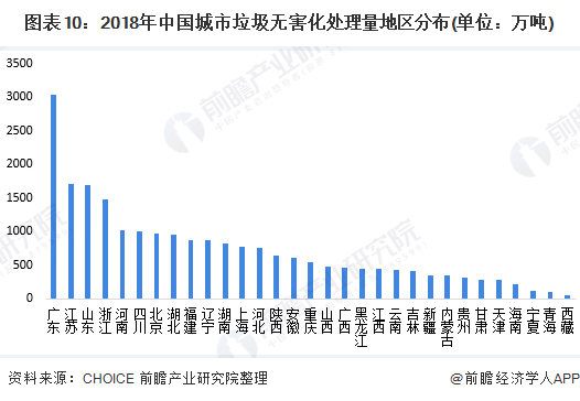 從無害化處理區(qū)域分布來看,我國各個區(qū)域之間有較大的區(qū)別。2018年,北京、上海、江蘇、浙江、安徽、湖北、湖南、廣西、海南以及重慶等地均已實現(xiàn)生活垃圾全面無害化處理。
