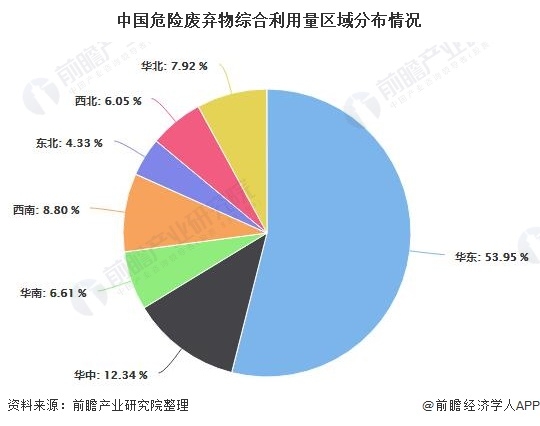 3、中國(guó)危廢綜合利用能力快速提升,華東地區(qū)占據(jù)危廢綜合利用量半壁江山