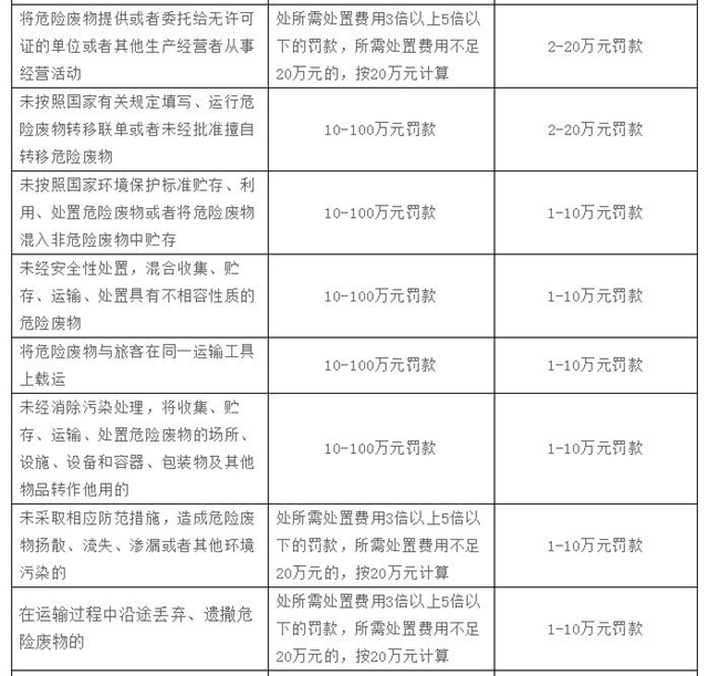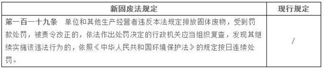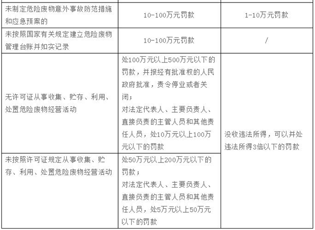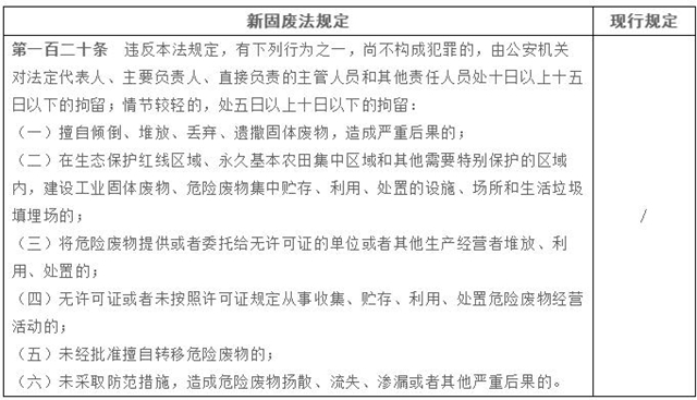 新《固廢法》對(duì)法律責(zé)任專章進(jìn)行了擴(kuò)充完善,加大了對(duì)固廢管理不合規(guī)的處罰力度,增加了企業(yè)的違法成本。除了對(duì)新增內(nèi)容設(shè)定了相應(yīng)罰則外,還普遍提高了違法行為的處罰金額,最高可罰至500萬(wàn)元,并且增加了按日連續(xù)處罰、行政拘留、查封扣押等執(zhí)法措施,這些嚴(yán)格的法律責(zé)任變化也值得企業(yè)特別關(guān)注。