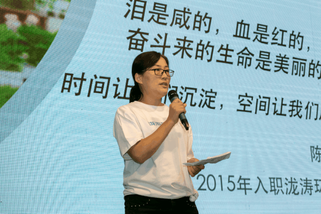 金秋豐收季,征程最難忘。陳敏、焦偉紅、王東鈺、史東軍、張紅、王雙月、姜玉……一個個熟悉的名字,一張張熟悉的面孔,作為每一年的入職者代表分別講述著自身與瀧濤環(huán)境的關(guān)鍵詞,起航、拼搏、發(fā)展、磨礪、蓄力;一聲聲衷心祝福,一句句肺腑之言,傳遞著成長的艱辛和瀧濤大家庭的溫度。
