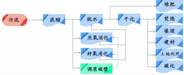 從流程上看污泥需要經(jīng)過濃縮、調質、脫水、穩(wěn)定、干化或焚燒等多道工序。