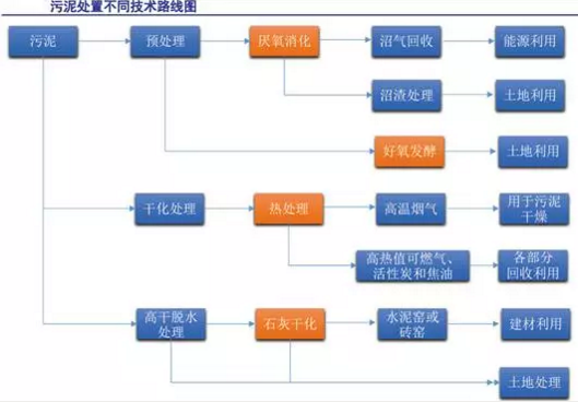 污泥處置不同技術路線圖