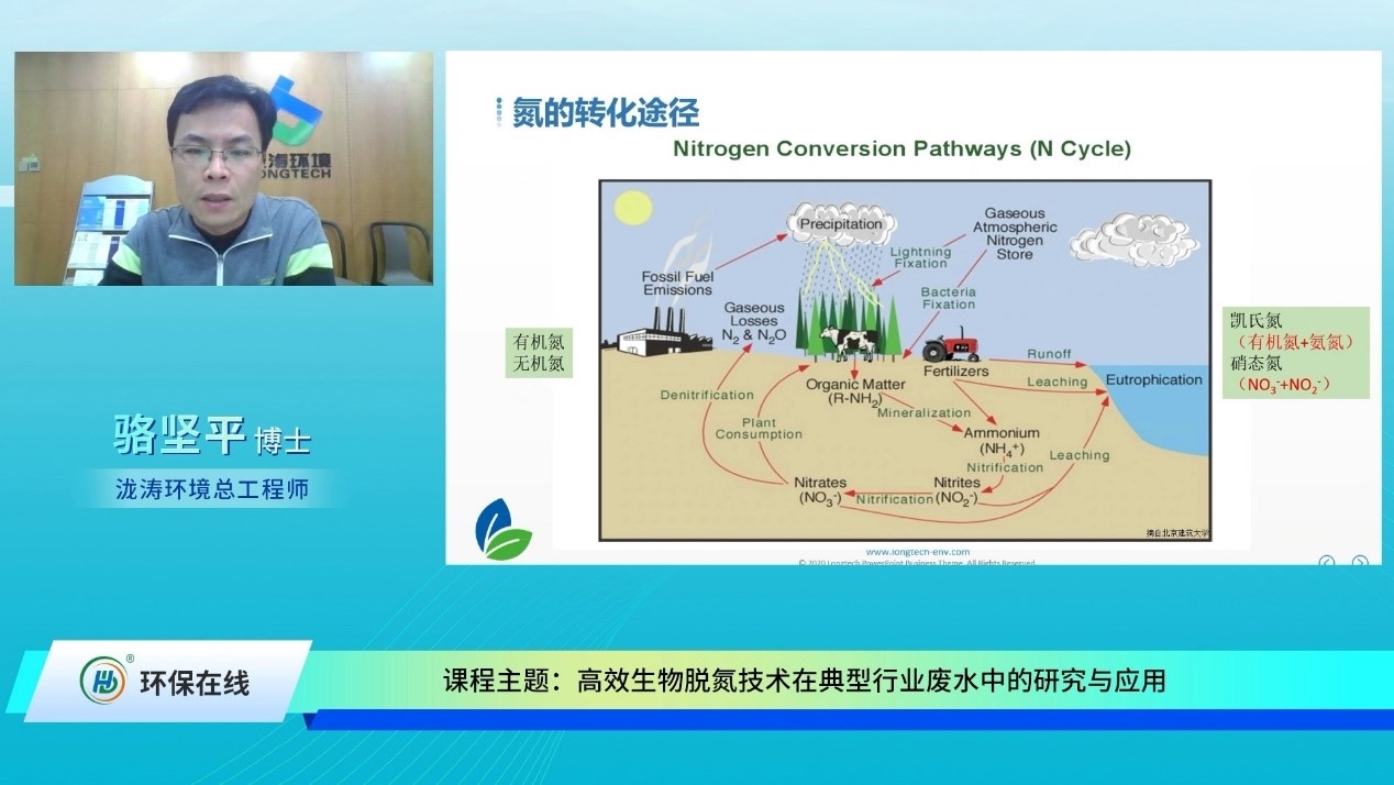 2020年12月23日14點,由北京瀧濤環(huán)境科技有限公司總工程師駱堅平博士帶來的“高效生物脫氮技術在典型行業(yè)廢水中的研究與應用”線上課程如期開播,吸引了超過2000名網友到課聽講。