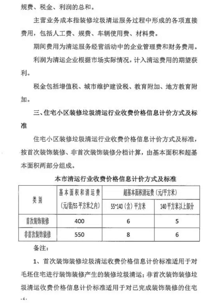 8月17日,《上海住宅小區(qū)裝修垃圾清運(yùn)行業(yè)收費(fèi)價(jià)格信息》(下稱(chēng)《價(jià)格信息》)公布,《價(jià)格信息》明確了住宅小區(qū)裝修垃圾清運(yùn)行業(yè)收費(fèi)價(jià)格信息的定義,明確收費(fèi)價(jià)格主要成本構(gòu)成、計(jì)價(jià)方式、標(biāo)準(zhǔn)以及收費(fèi)主體。住宅小區(qū)裝修垃圾清運(yùn),根據(jù)首次和非首次裝飾裝修、基本面積等標(biāo)準(zhǔn)計(jì)價(jià),此外,機(jī)關(guān)、企事業(yè)單位裝飾裝修垃圾清運(yùn)處置費(fèi)將根據(jù)清運(yùn)、分揀等環(huán)節(jié),按市場(chǎng)化、全成本要素,協(xié)商收取。