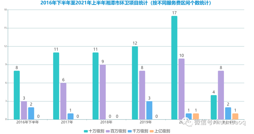 5年發(fā)布118個環(huán)衛(wèi)項目,2020年成轉(zhuǎn)折點據(jù)統(tǒng)計,2016年7月1日至2021年6月30日,湘潭市共發(fā)布118個環(huán)衛(wèi)項目,服務(wù)費金額合計約為48.34億元。▼118個環(huán)衛(wèi)項目中,TOP10項目的排行榜如下(按服務(wù)費金額):