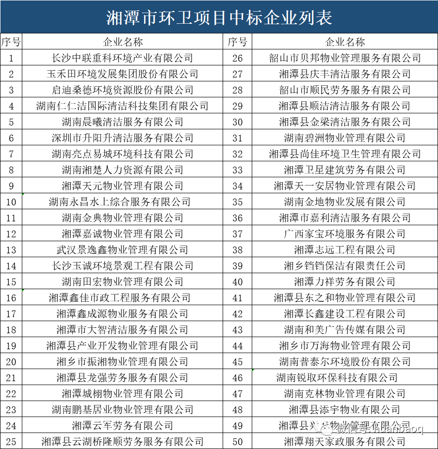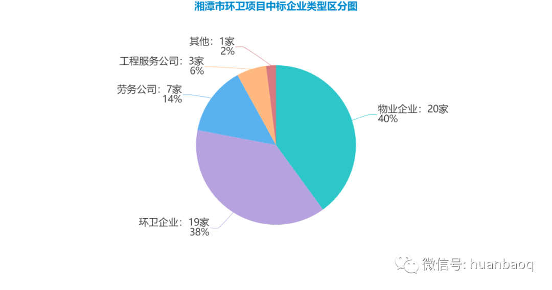 ? 第一,從50家中標(biāo)企業(yè)的“屬地”上可以看出,湘潭市環(huán)衛(wèi)市場可謂“物業(yè)橫行”。