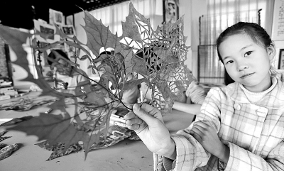 11月10日,江蘇東??h和平路小學(xué)的學(xué)生展示創(chuàng)意“樹葉畫”,表達(dá)對大自然的熱愛。