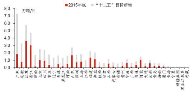 圖3 “十三五”期間各省新增生活垃圾焚燒處理能力目標(biāo)排序