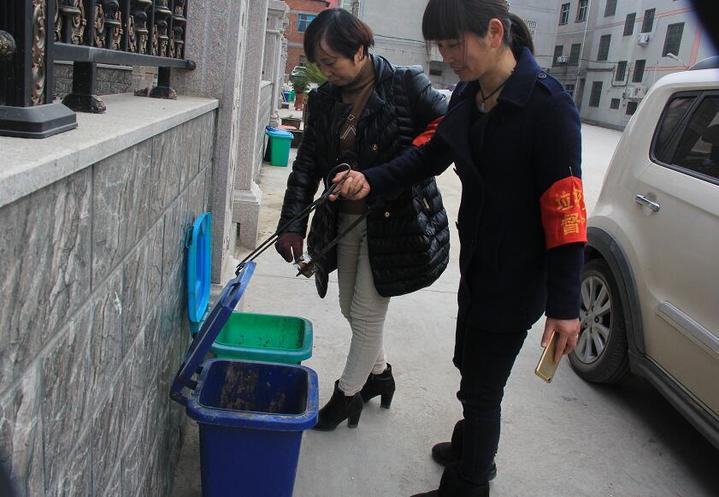 按照制度設(shè)計(jì),每戶(hù)村民需從源頭分類(lèi)、定時(shí)定點(diǎn)投放。剛開(kāi)始村干部、黨員代表、婦聯(lián)成員每天定崗輪值,在垃圾投放點(diǎn)現(xiàn)場(chǎng)宣傳,指導(dǎo)村民投放垃圾。同時(shí),根據(jù)具體情況,黨員、代表就近、就便、就親負(fù)責(zé)3-10戶(hù)村民,并由婦聯(lián)成員開(kāi)展每天一次的入戶(hù)檢查,做好評(píng)比記錄,在公告欄上張貼。