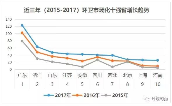 正基于此,一些人口大省和經(jīng)濟(jì)大省近年來(lái)受到環(huán)衛(wèi)企業(yè)的追捧,在環(huán)衛(wèi)市場(chǎng)化方面實(shí)現(xiàn)了跳躍式發(fā)展。比如河北省的環(huán)衛(wèi)市場(chǎng)化份額從2015年的7億,到2016年的24億,再到2017年的39億;河南省的環(huán)衛(wèi)市場(chǎng)化份額從2015年的4億,到2016年的9億,再到2017年的25億;安徽省的環(huán)衛(wèi)市場(chǎng)化份額從2015年的7億,到2016年的23億,再到2017年的42億……