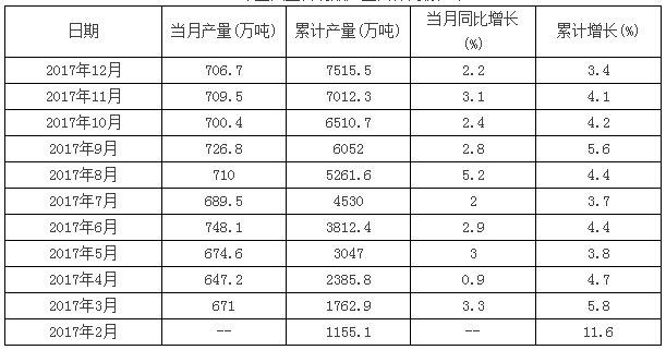 2017年全國塑料制品產(chǎn)量具體月份如下: