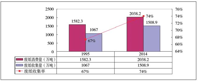 圖41995~2014年德國(guó)廢紙收集利用率對(duì)比