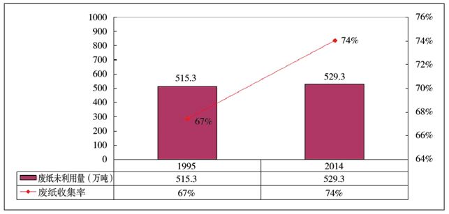 圖51995~2014年德國(guó)廢紙未利用量對(duì)比