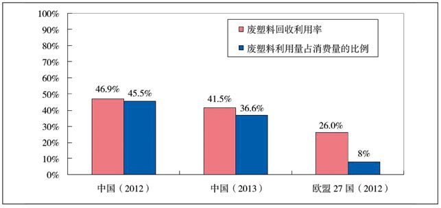 圖10中國(guó)內(nèi)地與歐盟廢塑料回收利用比例對(duì)比