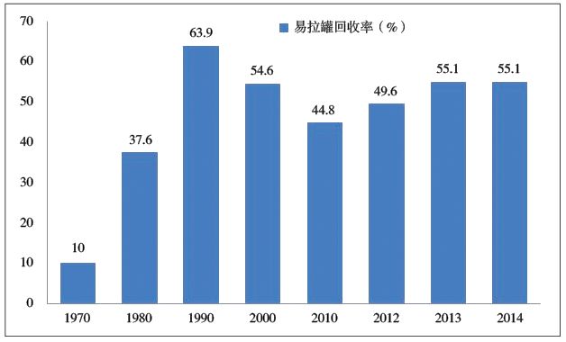 圖12美國(guó)1970~2014鋁制易拉罐回收率