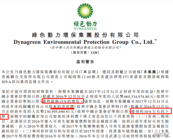 綠色動力環(huán)保前兩日公布了公司2017年的業(yè)績預(yù)告。當眾多券商看好的時候,公司卻是出了盈利警告。公司稱2017年歸母凈利潤預(yù)計下滑10%左右,但營收卻增長了15%。為什么會這樣?