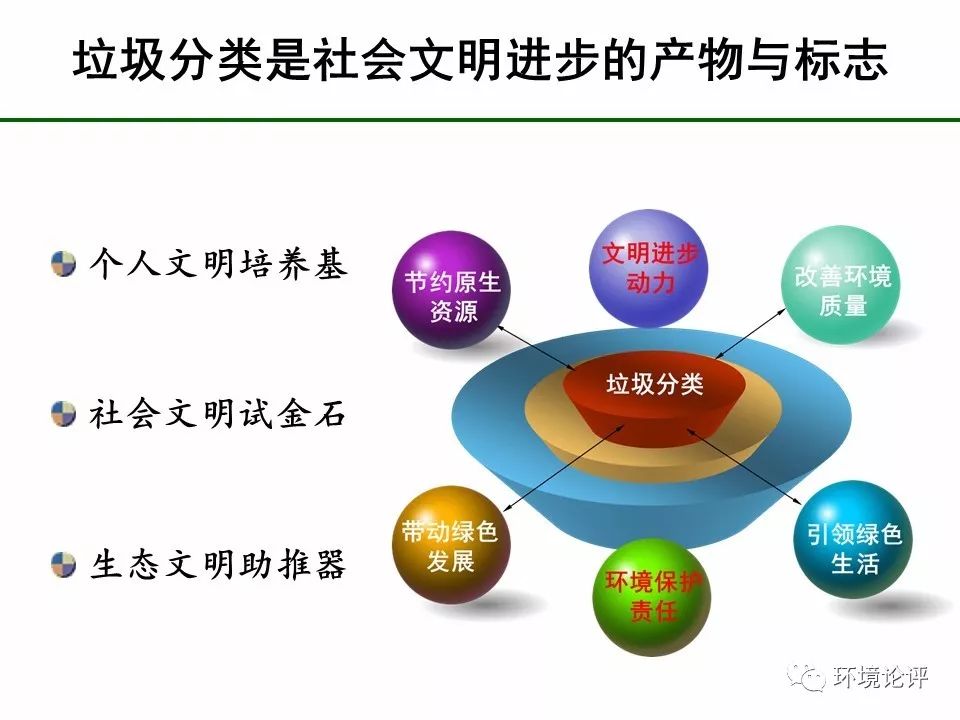2016年12月21日,習(xí)近平總書記在中央財(cái)經(jīng)工作領(lǐng)導(dǎo)小組第十四會(huì)議上發(fā)出了“普遍推行生活垃圾分類制度”的總動(dòng)員令。2017年3月30日,國務(wù)院辦公廳轉(zhuǎn)發(fā)《生活垃圾分類制度實(shí)施方案》,勾勒出了生活垃圾分類的總體路線圖。黨的十九大報(bào)告對(duì)生態(tài)文明建設(shè)進(jìn)行了系統(tǒng)深入的闡述,提出要在全社會(huì)牢固樹立“社會(huì)主義生態(tài)文明觀”,加強(qiáng)固體廢棄物與垃圾處置,生活垃圾分類也是題中應(yīng)有之義。我國生活垃圾分類由此進(jìn)入快車道,各省市陸續(xù)出臺(tái)了相應(yīng)的垃圾分類指導(dǎo)意見或?qū)嵤┓桨?,一些城市成立了專門的垃圾分類協(xié)調(diào)推進(jìn)機(jī)構(gòu),部分城市還開展了專門的生活垃圾分類立法,以法制為基礎(chǔ),政府推動(dòng)、全民參與、城鄉(xiāng)統(tǒng)籌、因地制宜的生活垃圾分類制度呼之欲出。