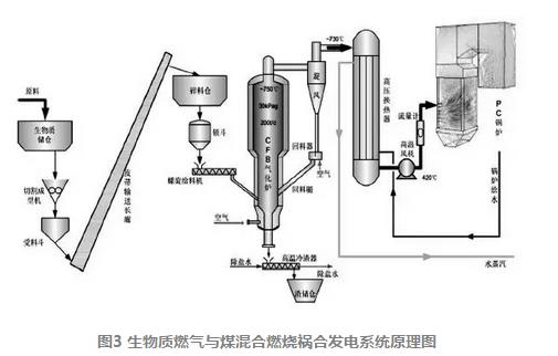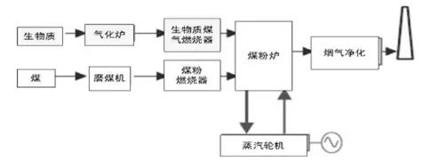 圖2生物質(zhì)燃?xì)馀c煤混合燃燒禍合發(fā)電技術(shù)工藝流程