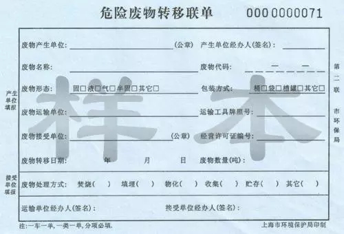 危險廢物轉(zhuǎn)移聯(lián)單(樣本)