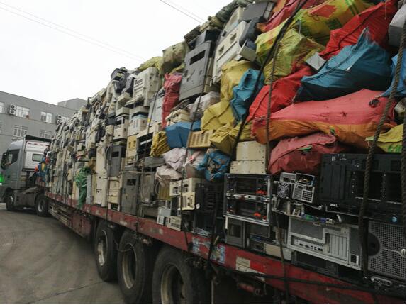 一輛滿載著電子垃圾的大貨車。圖:梁宙/攝