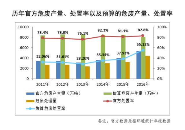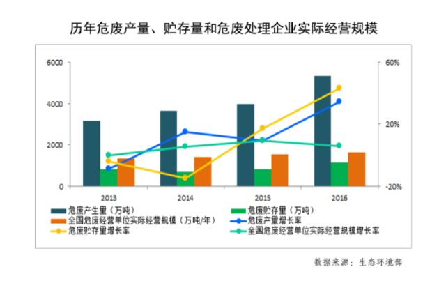 2016年,新危廢名錄發(fā)布,推動危廢科學化、精細化管理;同年11月,《“十三五”生態(tài)環(huán)境保護規(guī)劃》發(fā)布,將危廢項目納入地方市政基礎設施規(guī)劃,進一步強化了地方政府治理危廢的積極性。