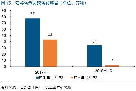 2017年跨省轉(zhuǎn)出危廢77萬噸,集中去浙江/安徽/江西