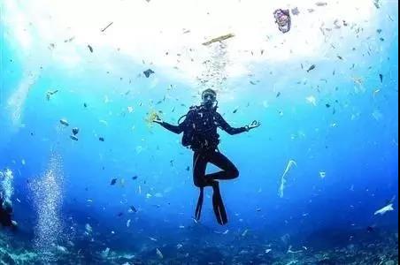 一名潛水愛(ài)好者在印尼海域潛水時(shí)被塑料垃圾包圍