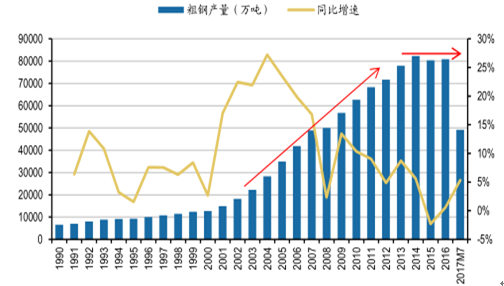 1、回收期疊加產(chǎn)能出清,供給進(jìn)入快速增長軌道粗鋼產(chǎn)量達(dá)到頂峰,增長面臨停滯。21世紀(jì)以來,伴隨著工業(yè)化和城市化進(jìn)程的加速,我國鋼鐵工業(yè)持續(xù)高速發(fā)展,2000-2013年鋼鐵產(chǎn)量的平均增長速度高達(dá)14.2%,而世界平均水平僅5.2%。2014年,我國粗鋼產(chǎn)量達(dá)到峰值8.23億噸。其后的2015-201...